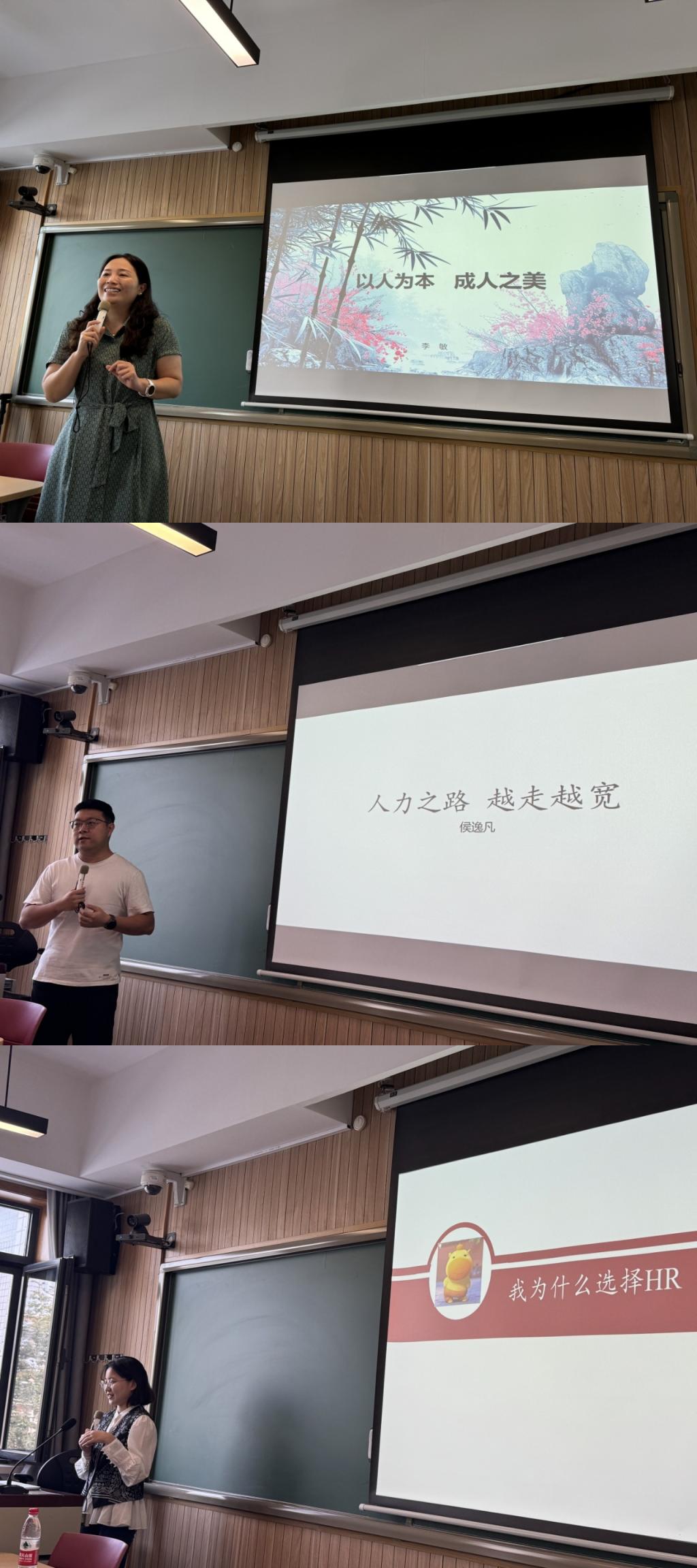 随后,2014级人力资源管理专业本科、2018级人力资源管理专业硕士毕业生侯逸凡以“HR之路,越走越宽”为题,分享了在银行系统从事人力资源工作的实战经验,强调了HR岗位作为职业起点的独特优势,以及如何在强监管、高要求的金融行业中实现个人与组织的共同成长。侯逸凡校友分享了HR工作带来的综合能力提升并针对学生职业规划提出三项核心建议:一是夯实专业基础,掌握人力资源管理理论与工具;二是拓宽实践视野,多走出校园;三是关注宏观趋势,培养政治敏感度与社会洞察力。此外,他还推荐职业发展相关书籍,助力同学们深化职业认知、提升思维格局。